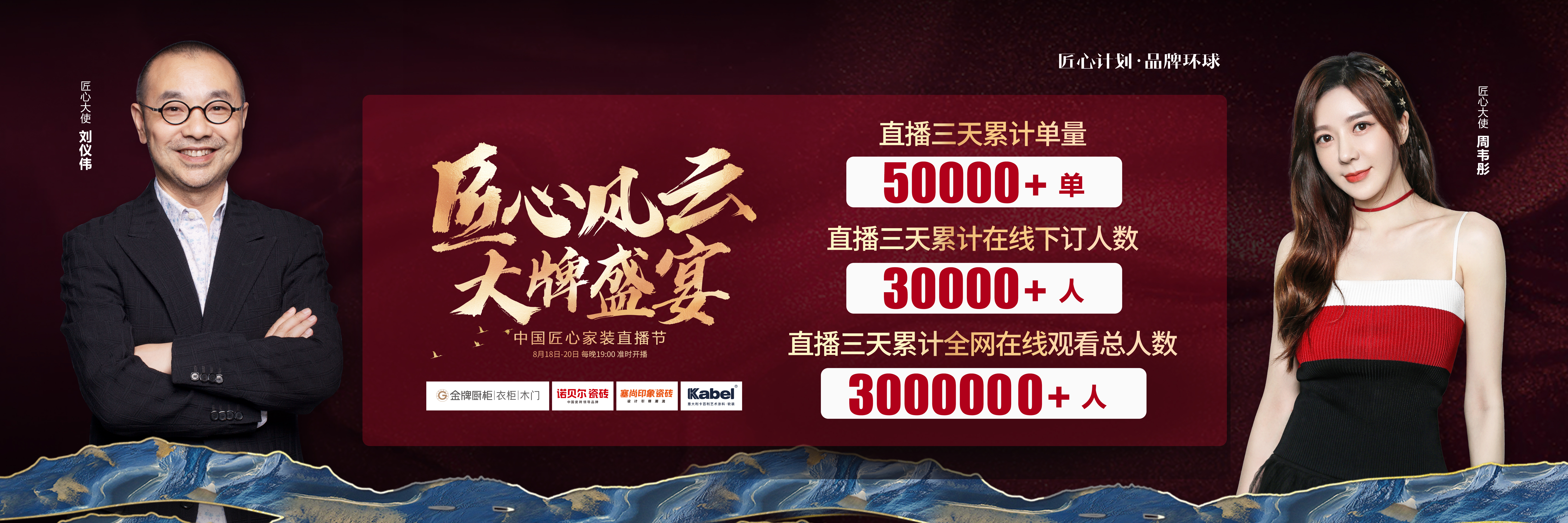 由米兰体育厨柜、诺贝尔瓷砖、塞尚印象瓷砖、卡百利艺术涂料联合缔造,创赢科技系统支持全案营销执行的“匠心风云 大牌盛宴”中国匠心家装直播节于8月20日圆满落...